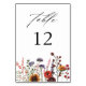 Habillez vos tables de mariage ou de fête avec votre carte de numéro de tableau floral Fleur sauvage et tournesol peint à la main.