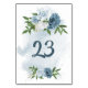 élégant personnalisable numéro de table carte fleurs bleues et blanches avec un peu de vert feuille botanique numéro de table carte