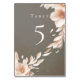 Ajoutez une touche d'élégance à vos tables de mariage avec cette carte de numéro de table taupe ornée de graphiques floraux doux. Les fleurs subtiles et le ton taupe sophistiqué créent une esthétique raffinée, parfaite pour un thème de mariage moderne ou romantique.