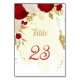 Numéro De Table fleurs rouges et blanches or mariage