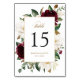 Numéro De Table Floral Bourgogne Blanc Magnolia Or Élégant