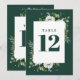 Numéro de table floral élégant vert émeraude de ca