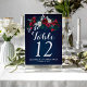 Numéro De Table Floral hiver marine bordeaux invité mariage