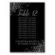 Ces belles cartes de numéro de table présentent un design simple mais élégant avec une calligraphie de script gris clair sur un arrière - plan noir avec un faux film argent frileux filigree floral dans les coins. Chaque carte peut contenir les noms de 10 invités, ils fonctionnent donc comme un tableau de sièges, ce qui permet aux gens de trouver facilement leurs tables à la réception de votre mariage.