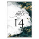 Numéro de table de mariage | Géode aquarelle moderne de saphir sarcelle fumée par la BarefootBride™ - Illustration aquarelle peinte à la main de mariage moderne magnifique dans des nuances de sarcelle profonde et de blanc avec des reflets de veinage dorés scintillants a l'apparence d'un géode de saphir sarcelle - Une combinaison de calligraphie script combinée avec une mise en page de texte minimaliste et contemporaine en fait une suite de mariage de style tendance. Cela fait partie d'une collection de papeterie de mariage avec des accessoires de mariage assortis.