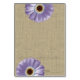 Jolie marguerite gerbéra violet clair avec l'aspect rustique du pays de burlap table carte assise pour compléter nos invitations. Pliez en deux pour créer une carte de place libre. Utilisez différentes marguerites colorées pour coder le choix de repas de votre client.
