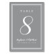 Un modèle pour n'importe quel numéro ce design de table de mariage simple, minimaliste et élégant est doté d'un design contemporain avec une bordure double en blanc immaculé sur un arrière - plan gris ultime. Le design chic offre une sophistication intemporelle et moderne. Personnalisez la conception de table mariage avec votre nom, date mariage et numéro de table en lettres et script blanc tendance. Le dos de la carte est un double de l'avant. Customisez facilement et commandez-en un pour chaque table avec les numéros de table individuels.