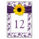 Numéro De Table Jaune pourpre Damask Sunflower Ribbon Mariage