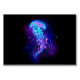 Grande méduse bleue, artistiquement dessinée, brillante, brillante, avec de longues tentacules sur arrière - plan noir avec bioluminescence violette. Méduse brillante.