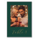 Ces numéros de table minimalistes verts de forêt ont une photo du couple heureux au centre avec l'ajout d'élégant script d'or juste en dessous. Pour modifier le texte et modifier la photo des deux côtés, cliquez sur le bouton Personnaliser.