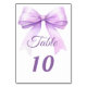 Personalize and your table numbers one by one. A white background decorated with a large lavender colored bow.