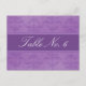Le numéro de table de damas Lilac comporte des bordures de damas horizontales contre un arrière - plan lilas. Une façon utile de guider vos invités pour votre événement spécial. Des cartes de correspondance sont également disponibles. © Matin 6