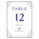 Carte de numéro de table de mariage à rayures nautiques Ancre Or