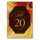 Vous obtenez à la fois le glamour et l'impact élevé avec cet ensemble de mariage de coordination qui comprend des motifs d'agate abstraits, texturés avec des faux cristaux et des reflets dans un film d'or scintillant. Des combinaisons de couleurs frappantes, comme cette collection avec sa palette audacieuse de l'orange chaud au jaune doré, créent l'arrière - plan pour les pièces de cette collection coordonnée. Cette carte de numéro de table mariage contient tous les éléments ci-dessus ainsi qu'une calligraphie élégante sur un étiquette octogonal, semi-transparent chocolat brun pour tenir votre texte. Un modèle est fourni pour ajouter facilement le numéro de table, les noms et la date du mariage. Affichez le lien de collection sur cette page pour voir tous les éléments correspondants dans cette belle conception ou recherchez ID827 pour voir des choix de couleurs supplémentaires pour cette conception.