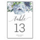 Aidez vos invités à trouver facilement leur chemin avec ces belles cartes de numéro de table double face. Modifiez facilement les numéros, les noms et la date ! Ce design présente un beau bouquet floral bleu poussiéreux et une police de script élégante !