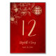 Cette carte de numéro de table chinoise traditionnelle comporte une branche d'art de la ligne magnolia d'or et un double symbole xi d'or sur un arrière - plan rouge chatoyant. Faire-part de mariage chinois correspondant disponible.