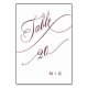 Numéro De Table Mariage de calligraphie de luxe de Bourgogne numér
