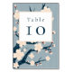 Ajoutez une touche d'élégance à votre décor mariage avec ces numéros de table d'inspiration japonaise. Doté d'une branche d'arbre en fleurs de cerisier contre un arrière - plan bleu clair texturé, ce numéro de tableau allie charme vintage et sophistication moderne, en parfaite complémentarité avec votre thème mariage.
