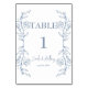 Bleu Floral Boho côté frontière Mariage Numéro de tableau