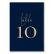 Classy Navy Blue Gold Script Mariage Table est défini dans un script de style manuscrit et votre numéro de table en dessous. Personnalisez facilement le numéro. La même conception est de l'autre côté et sera mise à jour simultanément lorsque vous faites votre changement au numéro. Ajoutez à votre panier séparément pour chaque numéro de table au fur et à mesure que vous le modifiez.