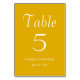Guidez vos invités de mariage à leur table avec cette carte de numéro de table de style simple qui comporte des lettres blanches et stylisées sur un arrière - plan de couleur jaune doré et tendance. Le design est de chaque côté de la carte. Modifiez votre carte pour modifier le numéro de table, le nom du couple de mariages et la date. Commandez les cartes séparément pour chaque numéro de table.