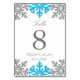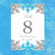 Cartes de numéro de table de mariage d'hiver flocon de neige bleu argenté
