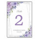 Numéro De Table Mariage Élégant Fleur Violet Lilas Argenté