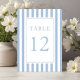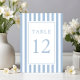 Numéro de table de mariage élégant rayé bleu poudre.