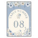 Numéro De Table Mariage Fleur sauvage Dusty Blue Boho