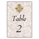 Une carte de numéro de table fleurie très élégante et élégante, avec un magnifique motif pastel de fleurs aux teintes douces d'abricot et de vert. Un ornement doré brillant au sommet est orné de minuscules bijoux verts. Tous les détails peuvent être customisés selon vos besoins. Veuillez noter que cette carte de lieu de réception de mariage a été créée pour être incluse dans un plus grand ensemble de papeterie mariage correspondante, y compris l'invitation, les annonces, enregistrer les dates et plus (bien que vous ne soyez certainement pas limité à customiser cette carte de table pour un mariage - elle peut être personnalisée pour tout autre type d'événement aussi). Si vous avez besoin de plusieurs de ces cartes pour différents numéros de table, il vous suffit de changer le numéro de table, de placer le produit dans votre panier, et de répéter le processus avant de récupérer autant de fois que vous le souhaitez.Vous trouverez la collection de mariages correspondante ici : https://www.zazzle.com/collections/golden_jeweled_floral_wedding-119090569795072593