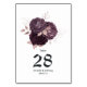 Carte de numéro de table élégante violet foncé et rose doré personnalisable selon les spécificités de votre événement. Idéal pour n'importe quel thème ou mariage champêtre.