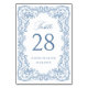 Numéro De Table Mariage Floral bleu bleu de la Renaissance