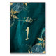 Numéro De Table Mariage Floral Bleu sarcelle Or Élégant