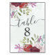 Numéro De Table Mariage floral rustique Bourgogne