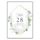 Cartes de numéro de table de mariage herbier d'eucalyptus de forêt sauvage avec cadre géométrique doré conçues pour être personnalisées rapidement et facilement selon les spécificités de votre événement.