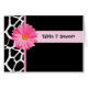 Une carte de numéro de table tendance pour une réception de mariage avec un motif de girafe noir et blanc élégant agrémenté d'une fleur de marguerite rose chic Personnalisez en ajoutant le numéro de table.