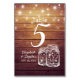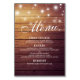 Place de siège mariage / Numéro de table / Carte d'escorte avec carte de menu Modèles - Elégant Mason Jar et String Lights sur Arrière - plan de bois rustique. Un design parfait pour votre grand jour. Tous les styles de texte, couleurs, tailles peuvent être modifiés selon vos besoins !