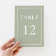 Mariage moderne élégant Sage Green Carte Numéro de table
