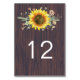 Numéro De Table Mariage rustique Tournesol Bois Lumière
