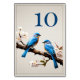 Ajoutez une touche élégante à vos tables de réception avec cette carte de numéro de table Mariage Spring Bluebirds. La conception de la carte comprend une paire d'oiseaux bleus reposant sur une branche en bois avec des fleurs de printemps contre un arrière - plan texturé en papier. Papier à lettres mariage supplémentaire disponible avec cette conception aussi.