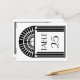 Carte postale en noir et blanc de style art déco mariage, imprimée sur les deux côtés et affichée en orientation portrait ou verticale. Un motif solaire et des rayures d'huile entourent la police décorative et la silhouette d'une mariée avec son marié. L'Art déco a été un style populaire dans les années 1920, 1930 et 1940.