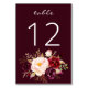 Numéro De Table Marsala de Bourgogne et floral rose