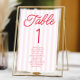 Numéro De Table Modern Minimal Minimalist Red Pink Stripes Wedding