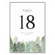 Ajoutez une touche d'hiver paisible à votre événement avec cette carte de numéro de table d'aquarelle, avec une forêt à feuillage persistant enneigée et une neige en chute douce. Idéal pour les mariages d'hiver, les banquets de vacances et les fêtes saisonnières. Personnalisez chaque carte avec votre numéro de table pour aider les clients à trouver facilement leur siège. Les pins d'aquarelle douce apportent un aspect rustique mais élégant à votre table. Ces numéros de table d'hiver sont parfaits pour les événements sur le thème des bois, des pays des merveilles d'hiver ou de la montagne.