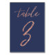 Carte de Numéro de Table de Mariage Pailleté Rose Gold et Bleu Glam