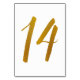 Tableau Numéro 14 : Cette carte de numéro de table de script de brosse décontracté est définie dans un faux papier doré. IMPORTANT : L'apparence du papier peint est un effet imprimé. Ce n'est pas un vrai papier d'aluminium. Si vous ne voulez pas cet effet, vous pouvez le supprimer comme ceci : 1) Cliquez sur "Customiser plus loin. 2) Trouvez l'image qui dit feuille z-or et supprimez-la. Choisissez ensuite votre propre couleur dans les couleurs arrière - plans.
