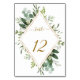 Cette carte de numéro de table mariage présente une aquarelle peinte de la verdure d'eucalyptus, des feuilles verts avec un cadre en diamant doré. Pour une personnalisation plus avancée de cette conception, cliquez sur le lien "Customiser plus loin". Des articles correspondants sont également disponibles.