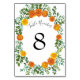 Numéro De Table Orange Rose Mariage Floral Moderne
