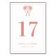 Palmiers Tropicaux Notés Stylish Pastel Coral Plage Rose Mariage / Suite Mariage Destination Design - Carte Numéro De Table. Ce design à thème tropical présente une illustration simple mais unique de deux silhouettes de palmiers reliées entre elles dans un noeud. Ce design moderne est parfait pour un mariage sur la plage, un mariage tropical à thème destination mariage, mariage île ou fête de mariage d'été. C'est pour le couple contemporain qui recherche quelque chose de moderne, classique mais fantaisiste et unique. Vous pouvez également utiliser ce design pour une douche nuptiale, une fête de fiançailles, une douche fiançailles, une douche à couple, un wedding shower, un dîner de répétition ou un faire-part mariage. Tout le texte, les éléments graphiques, le design et la couleur arrière - plan peuvent être changés en n'importe quelle couleur de votre choix. Illustration de fat*fa*tin. Facile à personnaliser avec votre propre message texte, nom, photo ou image. D'autres styles de police, filtres photo et fonctions d'édition sont disponibles sur la page "modifier la conception". ・ ・ ・ ・ ・ ・ ・ ・ ・ www.zazzle.com/fatfatin_blue_knot