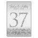 Ce design moderne de carte de table présente des accents de parties scintillant en argent faux avec un arrière - plan en argent. Parfait pour les mariages élégants et modernes. Les cartes de numéro de table vont jusqu'à 50.
